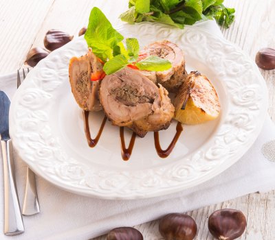 mit Gemüse Brunoise und Bergkäse gefüllt